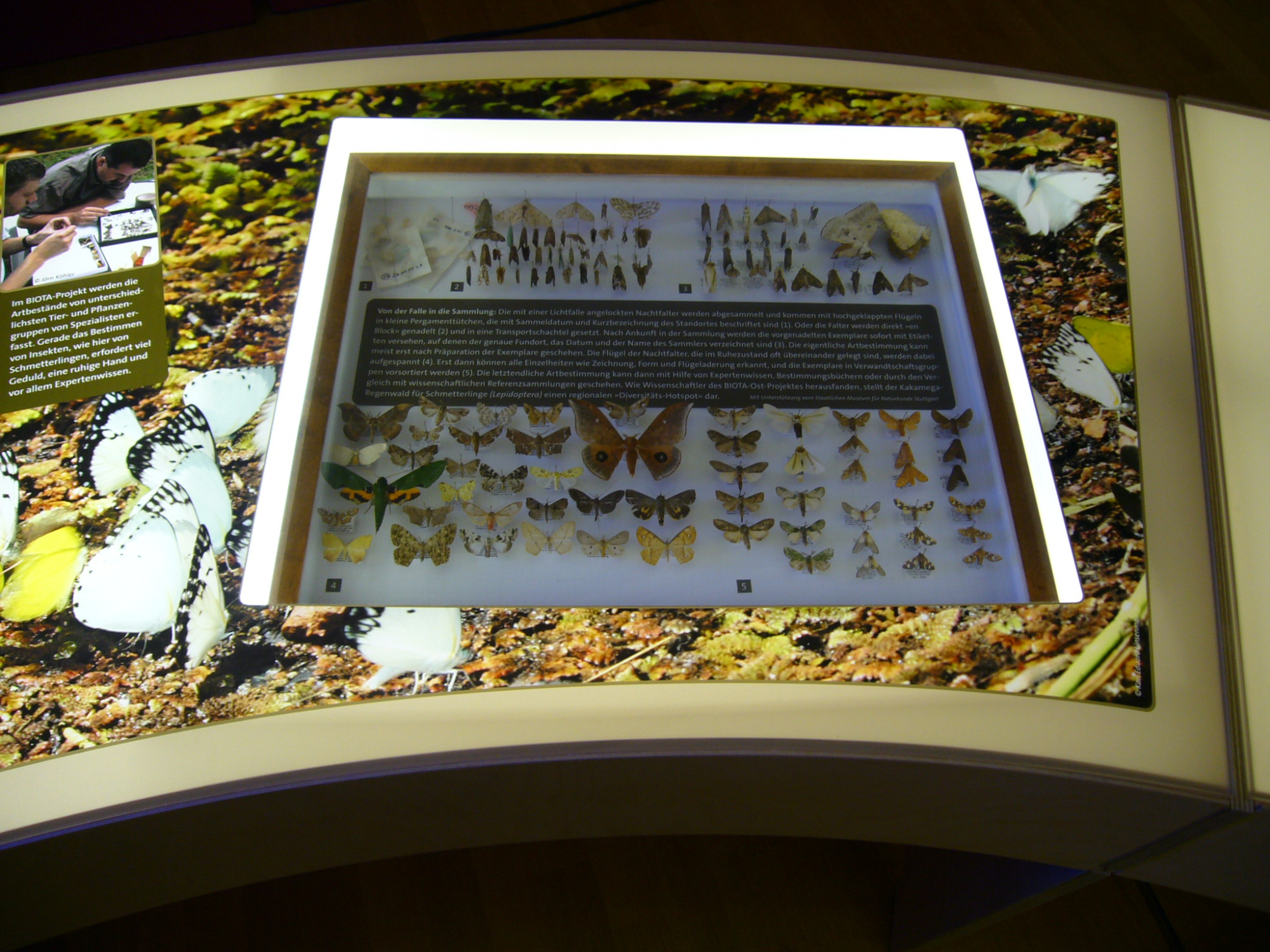 Die Wanderausstellung „Afrikas Reichtum – Biodiversität erforschen, nutzen und erhalten” präsentiert die Ergebnisse des umfangreichen Forschungsprojekts BIOTA-Afrika. Die Vielfalt der Arten und ihr Wert für uns Menschen sind die zentralen Themen der Ausstellung, ebenso wie die Frage nach ihrer Erhaltung. Große Leuchttürme dienen im Raum als Stationsanzeiger der einzelnen Themenbereiche. Leuchtende Bänder aus aneinandergereihten Pulten ranken sich um die Stationen und informieren über die jeweiligen Inhalte. Interaktive Objekte und Dioramen veranschaulichen den Besuchern die speziellen Themen und bieten ihnen die Gelegenheit, sich einzelnen Aspekten intensiver zu widmen. Nach ihrem ersten Aufenthalt in Bonn bis zum 8. Juni 2008 wurde die Ausstellung an weiteren Orten in Afrika präsentiert.