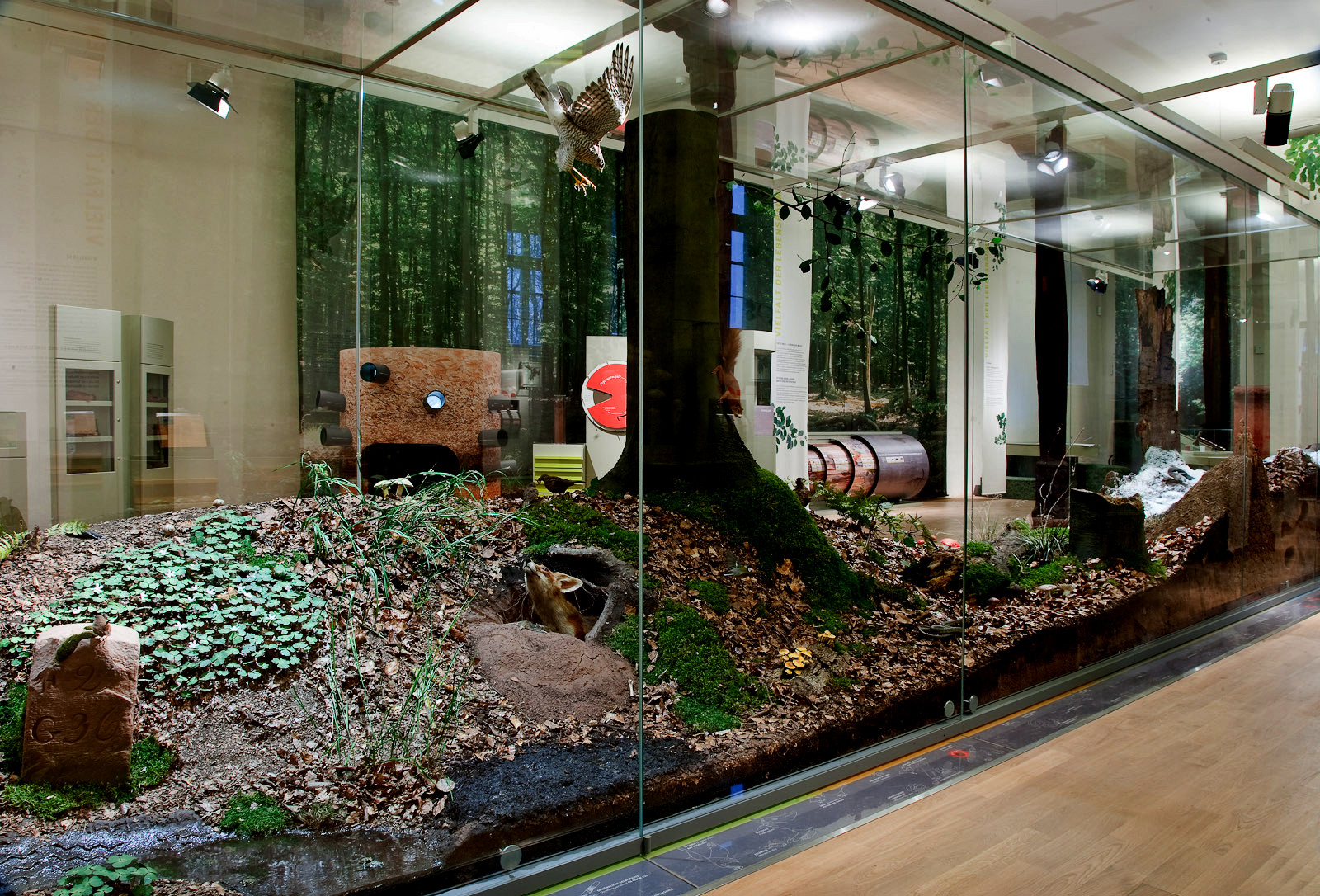 Das Museum gliedert sich in zwei große Ausstellungsbereiche. Der erste Bereich veranschaulicht die biologische Vielfalt des heimischen Buchenwaldes. In der zentral positionierten Dioramavitrine ist ein lebensgroßes Stück Buchenwaldboden im Verlauf der vier Jahreszeiten mit seinen Bewohnern zu sehen. Über ein interaktives Paneel können die dort beherbergten Lebewesen erforscht werden. Im Raum gruppieren sich ringsherum Themenstationen, an denen die Vielfalt der Gene, Arten und Lebensräume veranschaulicht wird und die sich zudem über zahlreiche Hands-on-Elemente und Medien erleben lassen.
