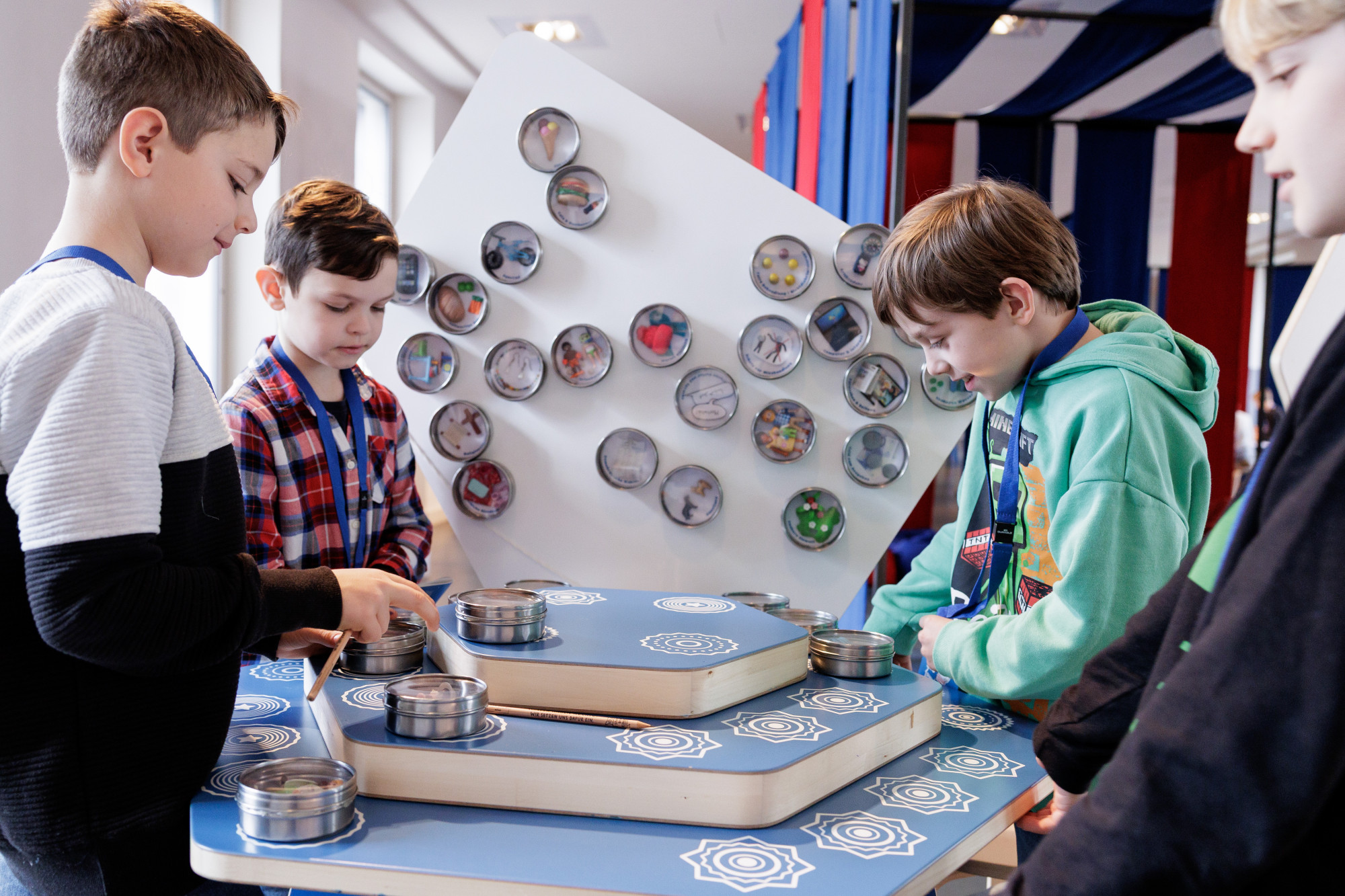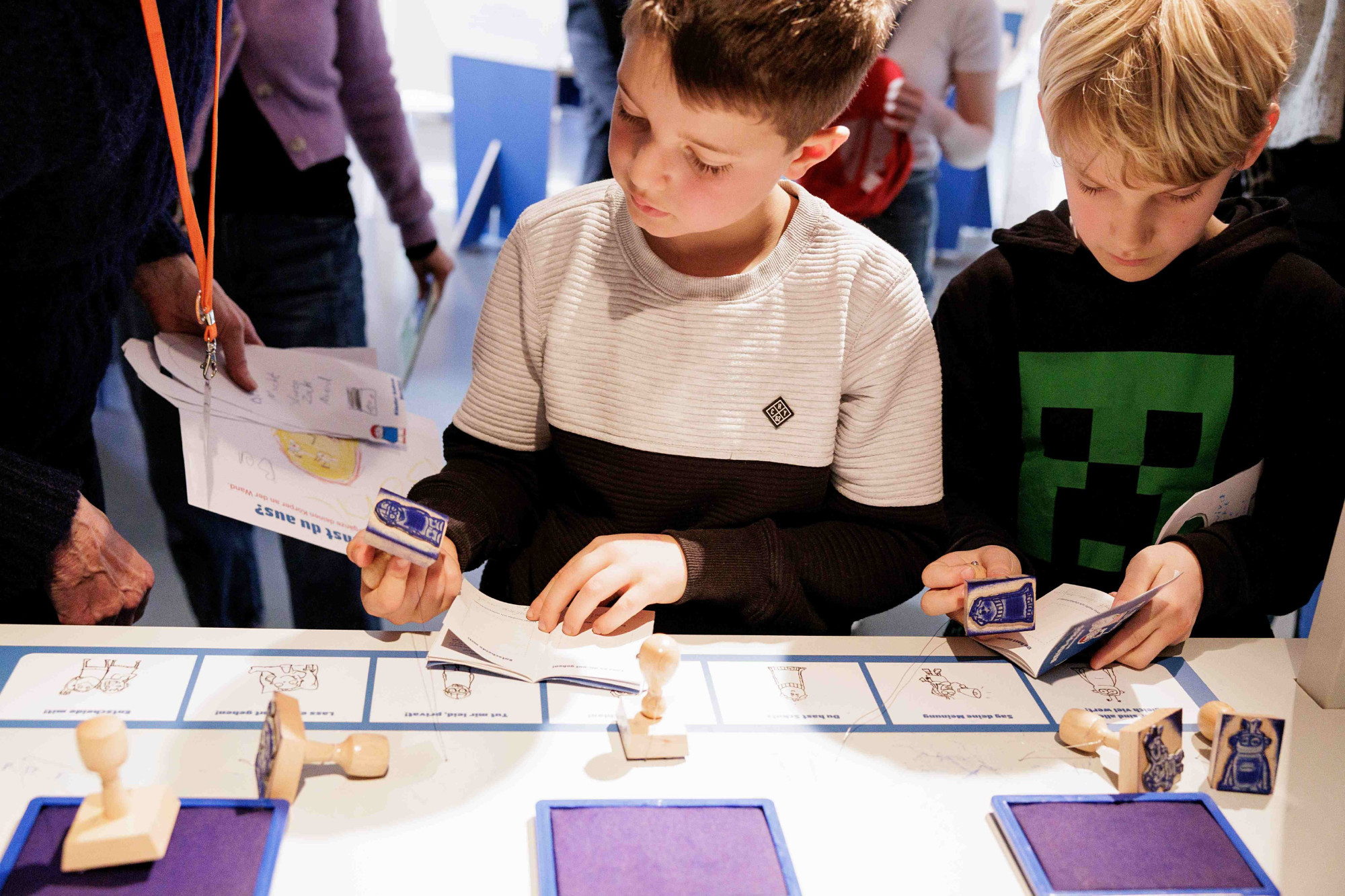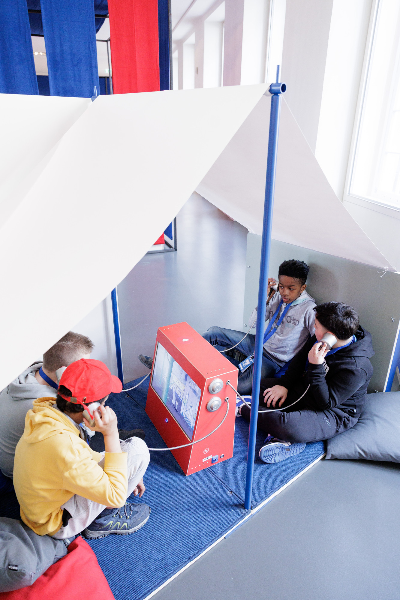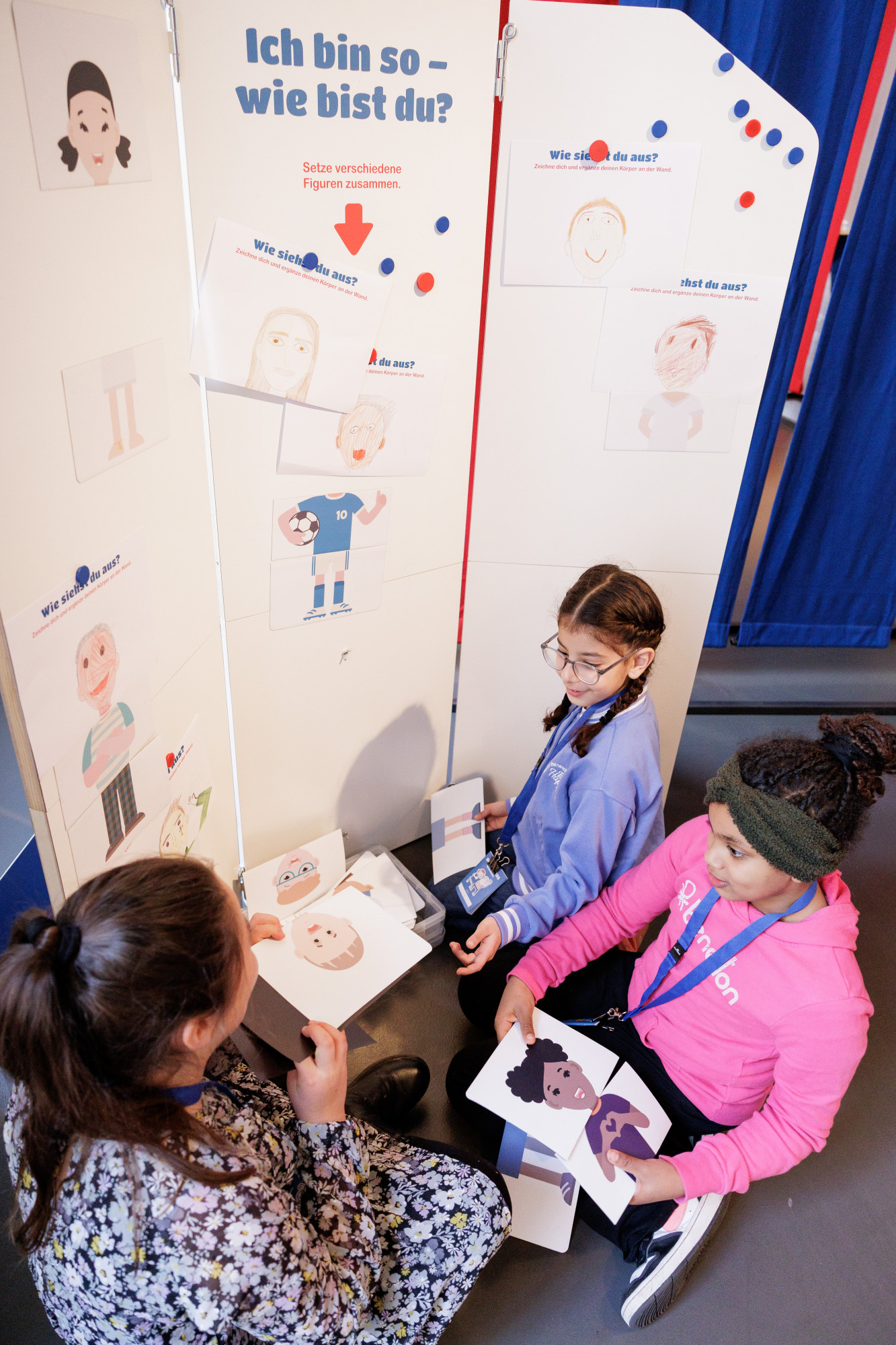 Die interaktive Ausstellung zu den Kinderrechten wurde im Auftrag des Kinderbüros zunächst als Wanderausstellung konzipiert und gestaltet. Die Stationen bestehen aus mobilen Elementen, die sich innerhalb eines halben Tages auf- oder abbauen lassen. Für eine Präsentation im Jungen Museum wurde die Ausstellung um ein Forum sowie durch weitere Stationen erweitert. Um die Raumakustik zu verbessern und die inhaltlichen Stationen zu struktieren, wurden Raumtrenner mit Textilbahnen eingebracht.