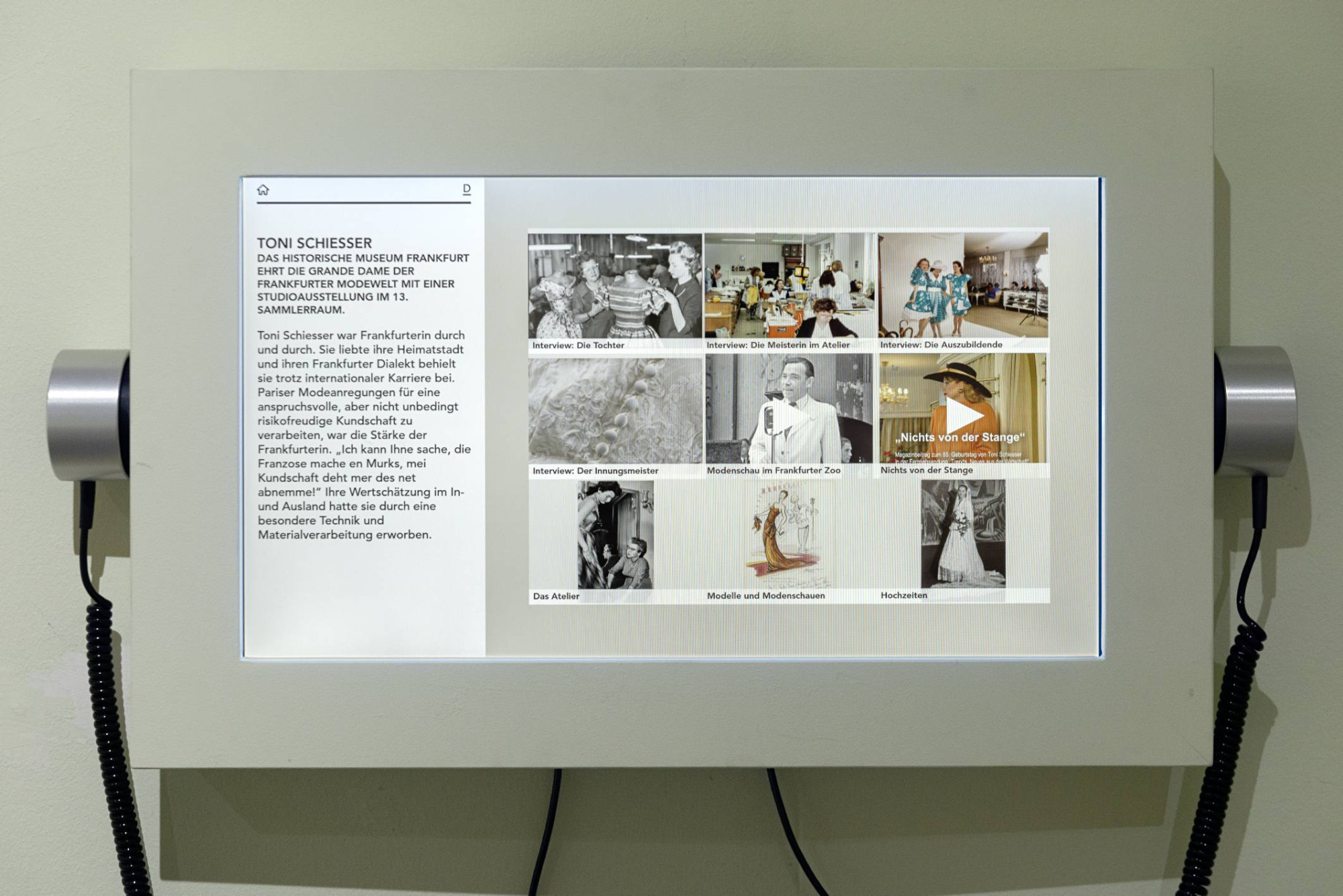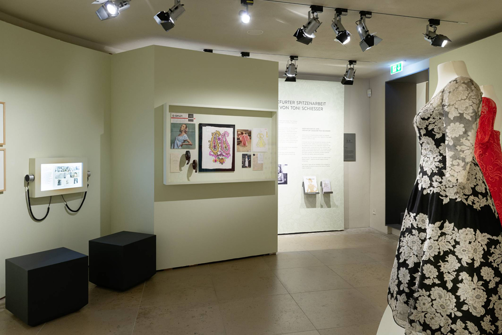 Mit der kleinen, feinen Ausstellung wird die Frankfurter Schneiderin und Modemacherin Toni Schiesser gewürdigt, deren Firmen- und Privatnachlass 2014 und 2015 dem Historischen Museum Frankfurt vermacht wurde.