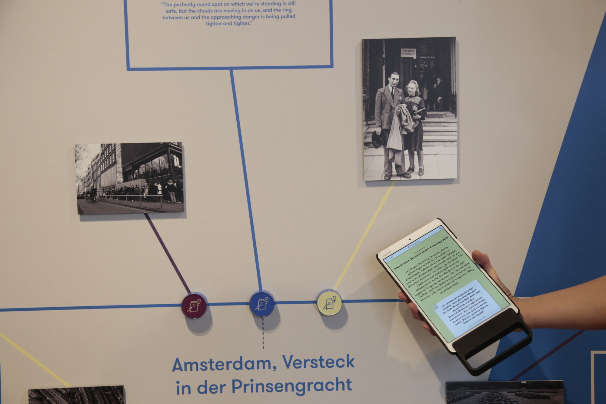 Im interaktiven Lernlabor haben Besucher:innen die Möglichkeit, sich aktiv mit den Themen Antisemitismus, Rassismus und Diskriminierung auseinanderzusetzen. Dabei können sie in die Geschichte von Anne Frank und ihrer Familie eintauchen, ihr Tagebuch erkunden und ihren Aufenthalt im Hinterhaus nachvollziehen.