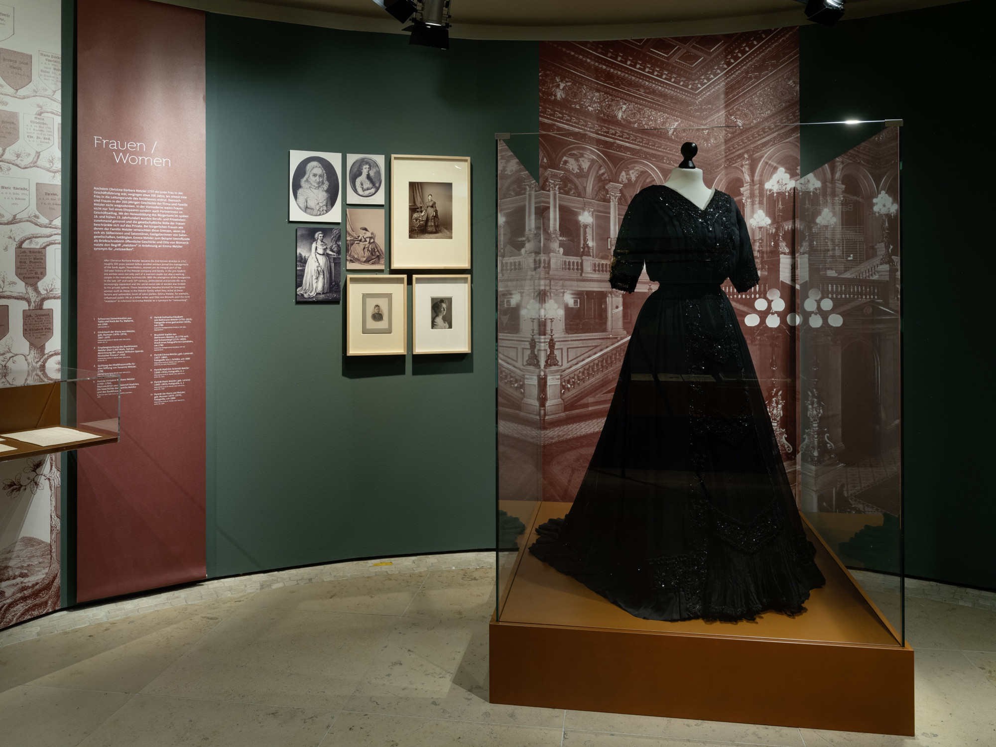 Die Kabinett-Ausstellung im 13. Sammlerraum zeichnet mit bisher nie gezeigten Objekten aus dem Firmenarchiv und der Sammlung des Museums eindrücklich 350 Jahre Firmengeschichte nach: Über Krisen und Kriege, die erste weibliche Bankerin Frankfurts und die Entwicklung des Bankenbetriebs, von Staatsanleihen bis zur Finanzdienstleistung und Vermögensverwaltung.