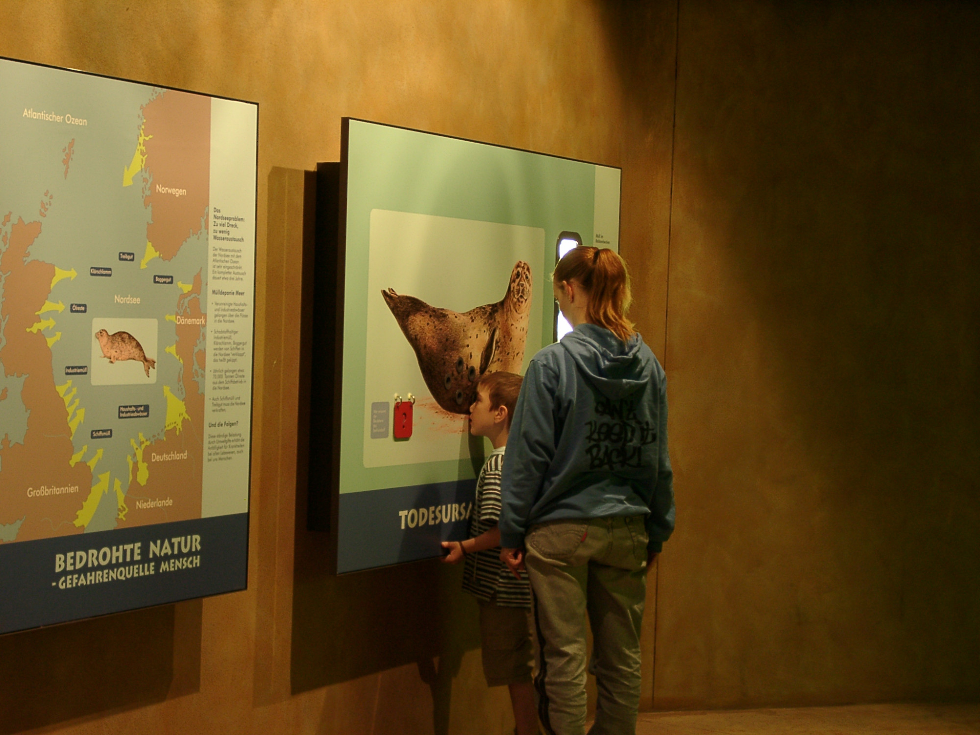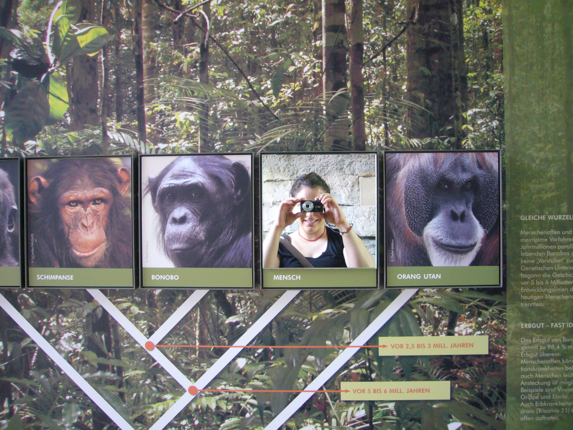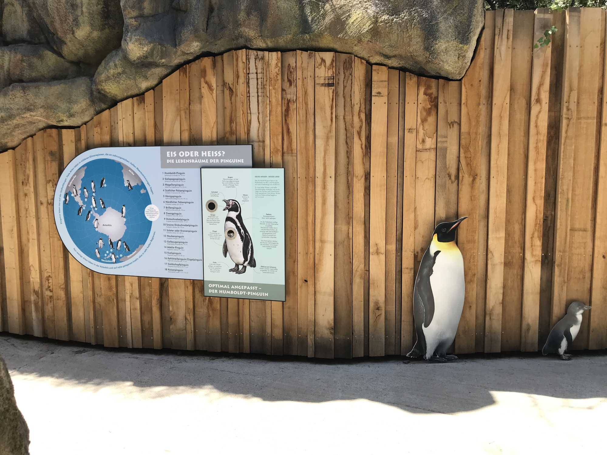 Seit dem Jahr 2000 haben wir gemeinsam mit der Zoopädagogin ein Informationssystem für den Zoo Frankfurt entwickelt. Es umfasst Tafeln, die über den Körperbau, das Verhalten und die Lebensräume der Tiere sowie über Naturschutzthemen informieren. Die Tafeln werden mit interaktiven Objekten kombiniert, die komplexe Zusammenhänge auf spielerische Weise veranschaulichen. Die Besucher:innen können konkrete sinnliche Erfahrungen sammeln und anhand kleiner eigener Experimente Antworten auf gestellte Fragen finden.